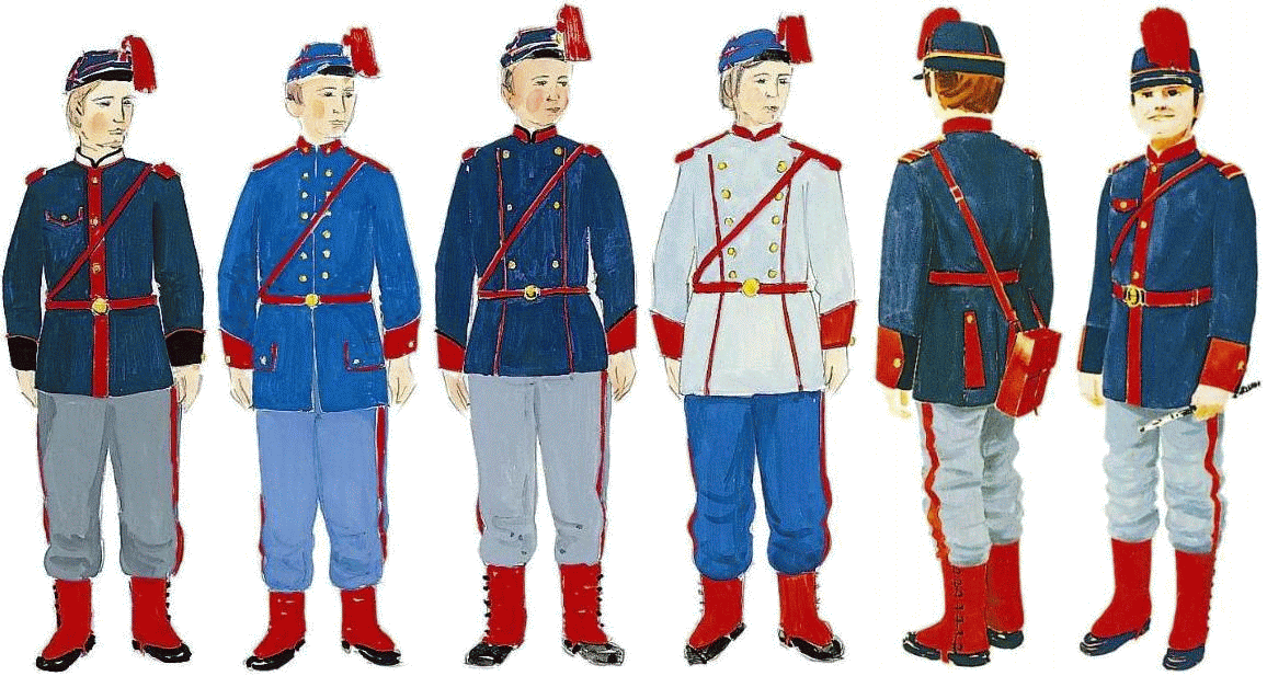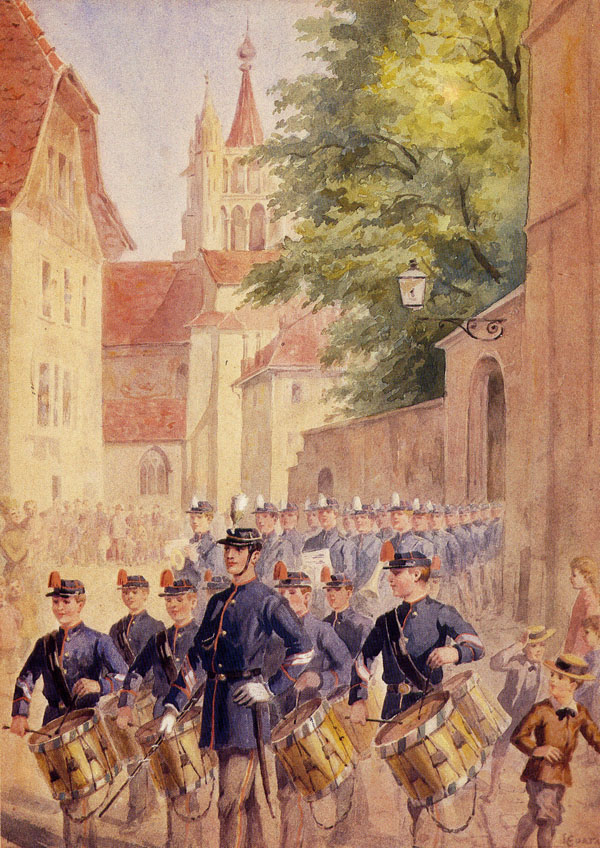 Cadets lausannois Aquarelle de Louis Curtat 1869-1944 Musée historique de l'Ancien-Evêché, Lausanne | |||||||||||||||||||||||