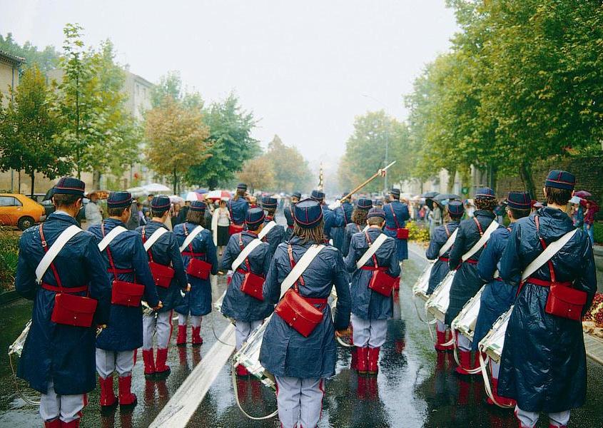 Eh ! Oui ! Il arrive qu'il pleuve ! Mais le Corps garde fière allure. | |||||||||||||||||||||||